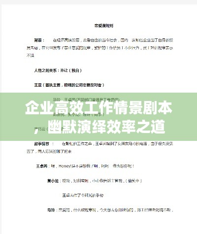 转载请注明来自北京维邻康大药房有限责任公司,本文标题:《企业高效工作情景剧本,幽默演绎效率之道》