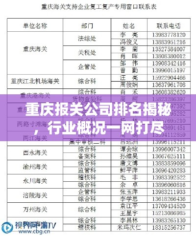 随着全球贸易的不断发展,报关行业作为连接国内外市场的重要桥梁,其重要性日益凸显,重庆作为我国西部地区的重要城市,拥有得天独厚的地理优势和不断完善的交通网络,其报关行业发展迅速,本文将探讨重庆报关公司的排名及相关行业概况,为企业在选择报关合作伙伴时提供参考。
